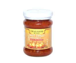Чесночный соус чили от торговой марки Thai Food King придаст блюдам пряную остроту и заметно улучшит их вкусовые качества. Его можно подавать в отдельной посуде к курице и овощам в панировке или добавлять на сковороду во время жарки мяса, чтобы оно пропиталось жгучим перцем и ароматным чесноком.